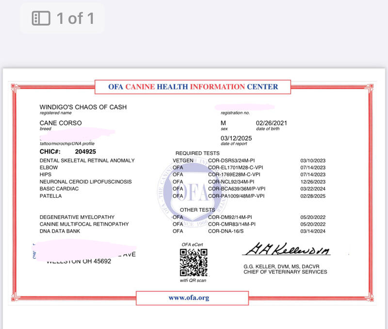 message windigocanecorso about this ad Proven Sire! OFA CHIC- 204925 Pup back for Stud fee can be discussed provided the female meets the following- Requirements for Corso female: Must be 24 months of Age Have Genetics, Hips & Elbows at a minimum Brucellosis negative test (preferred) for AI Stable temperament and not be fearful or Aggressive, Be of the correct accepted Breed Standard Coat Colors. Be Registered with a reputable registry. |