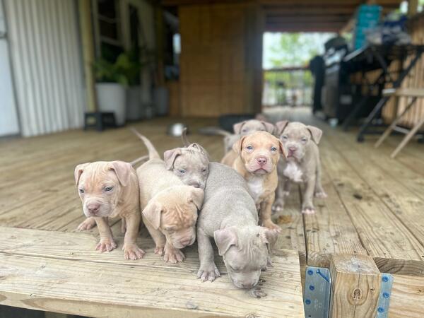 message mthomaa2023 about this ad Pure breed XL American Bullies in need of a forever home. They are great extremely smart, active companions. They are 7weeks old. |
