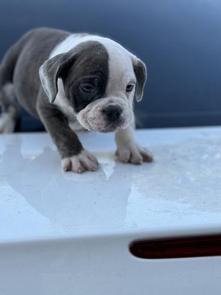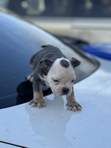 message pprcg3738 about this ad Have 4 healthy male micro bullies blue and white and blue tri colors 12 weeks old theyve been dewormed and vaccinated. They all have Beautiful markings with great temperament like there parents and wont cost you an arm in leg lol as the breed can get pricey. They love kids and will be easy to train theyre very smart. Call or text 7572926479 for more info |