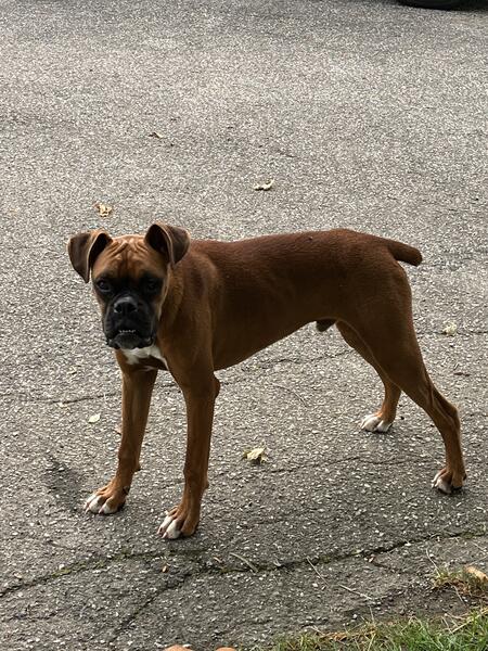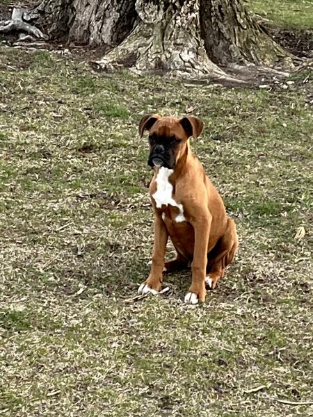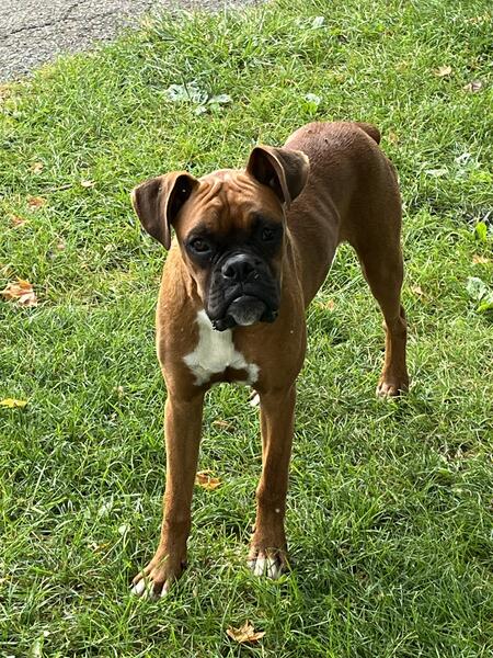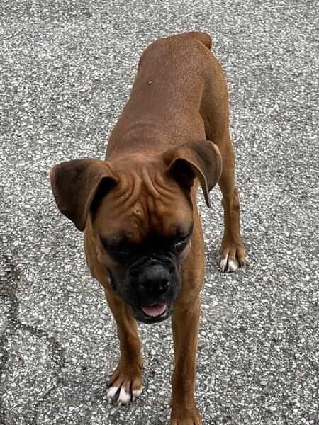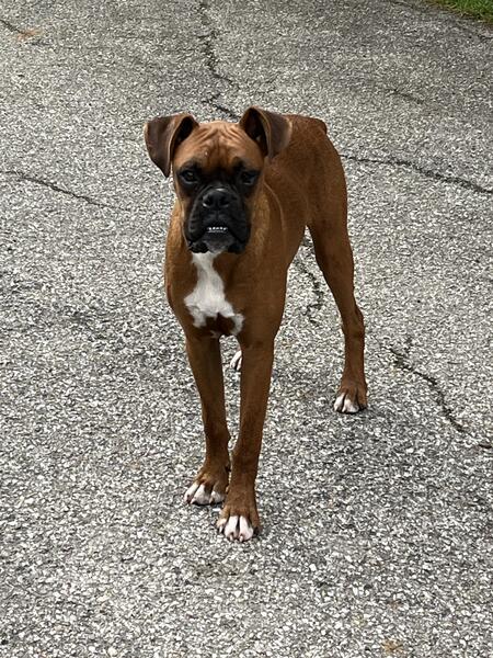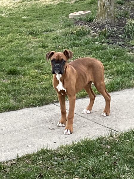 message flyer about this ad AKC Boxer puppy, male, Vet checked, 1st shots, dewormed, tails and dewclaws done, needs new home, DOB 10/30/24. A very adorable personality, will be great family pet. West of Columbus 6l4-260-3265 |