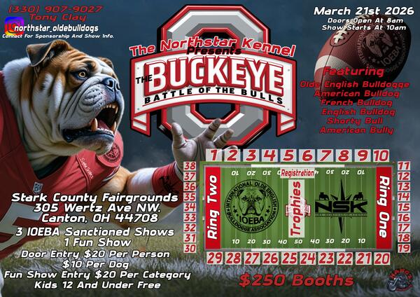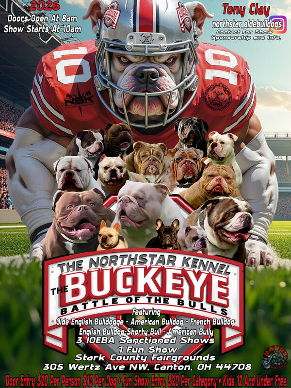 message thenorthstarkennel about this ad Olde English Bulldogge American bulldog French bulldog English bulldog American bully Shorty Bull Hosted by the northstar kennel 330 907 9027 Call for sponsorship and booth rsvp |