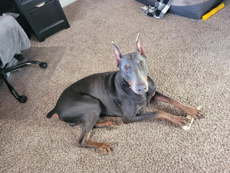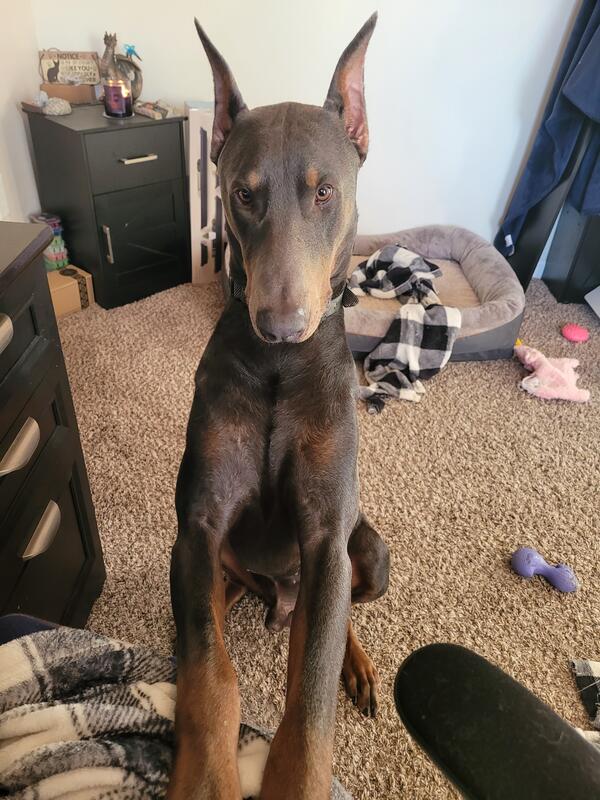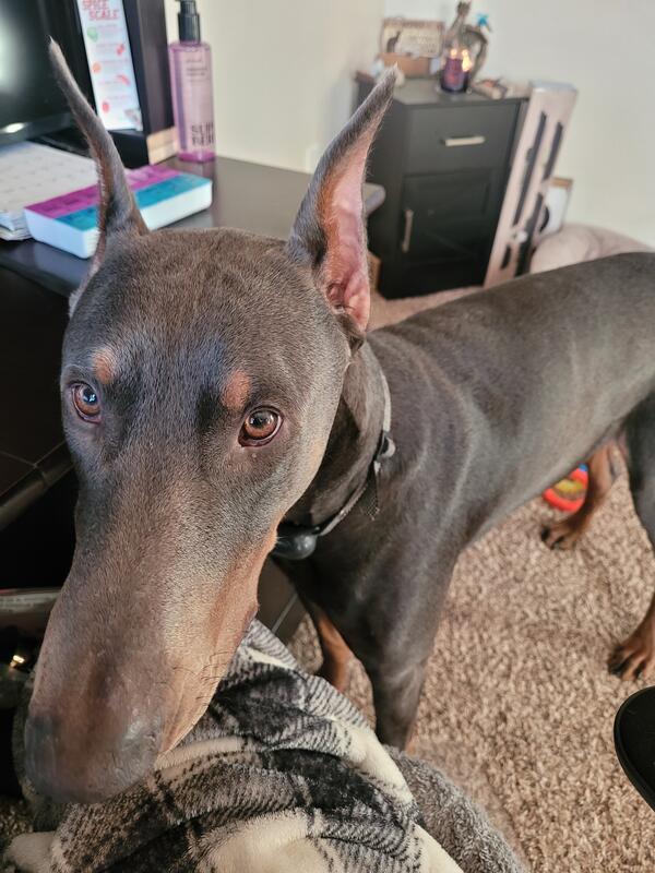 Full blooded Blue Doberman looking for mate. Fully vetted, wonderful temperament. Fee is negotiable. Located in NKY.