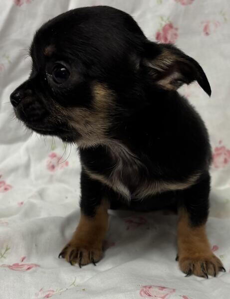 message pmckymk158 about this ad Gorgeous, shortcoat male chihuahua puppy born September 21st will be 8 weeks old and ready to go November 16th. He is a pretty black and tan in color. Dewormed at 4, 6, and 8 weeks. Vaccinated at 8 weeks. Vet health checked. Family raised with kids and other pets. He is $1150.00 and comes with toy, outfit, potty pads, puppy kit, and puppy food sample. Please call or text 920-450-7786 |