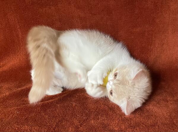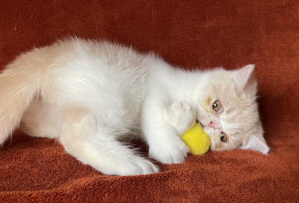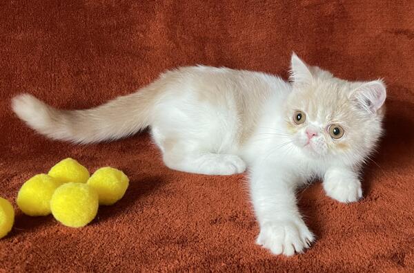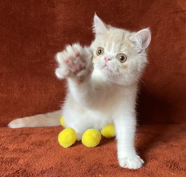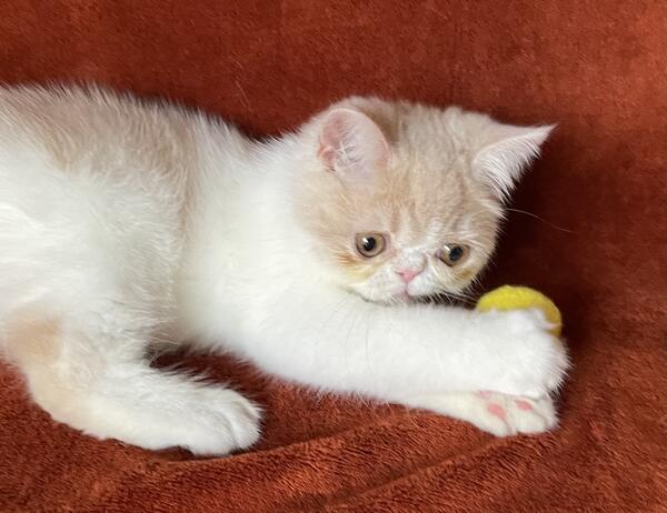 message junkitty about this ad Exotic Short Hair Cream & White, Boy, CFA Registered. Born July 31st, 2025. Hopper is a silly sweet boy. He has more of doll face (poked out) than the others. It makes him look adorable. Hopper has a silly sweetness about him and he does a tail butt wag when he is happy. He has been neutered, 1st set of shots, and is chipped. He would love to find his family and give them a lot of attention. Jamncats.com |