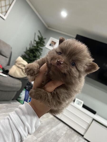 message estescru about this ad Hi there, they are currently 5 weeks old they will be ready in about 2 weeks. They will have their first shots and be dewormed. They both are male Pomeranians |