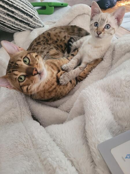 message hjbrg8162 about this ad Brown and snow bengal cats. Brown one is a Male, turns 1 Sept 1, 2025. Snow is female, 7 months old. Not neutered/spayed. Rehoming fee $2500 for both |