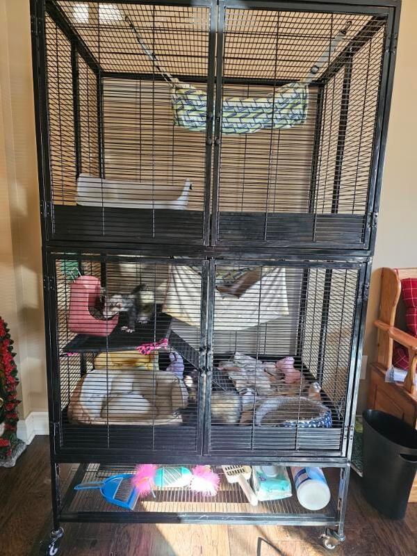 message ranah about this ad I am unfortunately having to rehome my two sweet loving male brother ferrets due to new travel often for work and also relocating out of state this coming year. They are very sweet, one gives kisses a lot and the other is also very sweet. Neither bite at all and love attention. They are great with other animals and kids as well. They were born February of 2024 so they are only 1yr 9mon old. They are litterbox trained, descented, and have had all their first shots. May need ones again now. They come with EVERYTHING pictured and I am needing to rehome them ASAP due to not being home for long periods of time for work now. They come with their mansion 4 level 4 door wheeled heavy duty metal cage, all their toys, beds, hammocks, blankets, food, 25pd wheeled food container, extra different food bowls, extra litterbox, ferret tunnel, and their self feeding water bowl, food bowl, litterbox and all other items in their cage currently that are shown in pictures. It is pick up only no deliveries or meet ups. You will need to pick them up and transport them. Their cage is very large and you will need an SUV at least to fit their cage. You could lay it flat on its back and it should fit, and you can bring a cat carrier or something of the same to put them in while driving since you will need to lay their cage down. All bedding will be washed for you prior to pickup and I will put all of their belongings in trash bags for easy transport for you when you are on your way for pickup. You will need to buy them litter as I am at the end of the ferret litter. They should have plenty of food still for a while that is left in their food container. If you do not want to purchase their cage and all extras than I am willing to rehome only them and their food, food container, food bowl, water bowl, litterbox, two beds, two hammocks and their blanket and a few toys for $500 total for everything except their cage and extras. If you only want the ferrets and nothing to go with them then I'm willing to those them for $400 total. SERIOUS PEOPLE ONLY! WHOMEVER CAN PICK THEM UP SOONEST WILL BE THE ONES TO GET THEM AS IT IS URGENT, I REHOME THEM ASAP! I leave on a work trip very soon. Cash only accepted or via Paypal. Come meet, hold and take home these sweet, fun and amazing boys. Will not rehome them separately. Have to go together. message ranah about this ad |