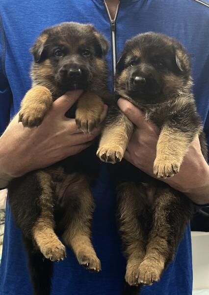 message shepherdman about this ad Y LITTER Whelp Date: February 13, 2025 Ready to go home: April 3, 2025 Total 4 pups 2 male and 2 females 2 black and red males 2 black and red females Father: Phantom von der Stadtrand Mother: SG Arya von der Stadtrand.ATT CGC DJ The father of the litter is Phantom von der Stadtrand. The mother of the litter is Arya von der Stadtrand. Both parents have been selectively bred and tested to ensure quality temperament and excellent health. From this litter we expect large bone pups with strong nerves and exceptional health. All of the pups are black and red saddle puppies. Both the father Phantom as well as the mother Arya adore children. Puppies are available to show, working and family homes. All puppies are sold with a written hip and health guarantee, up to date on shots, as well as full AKC registration. www.PolicePups.com |