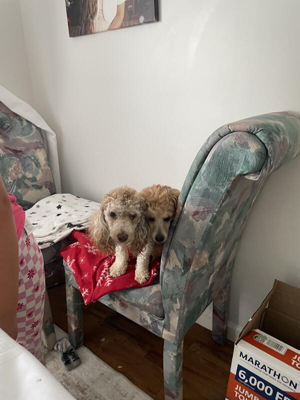 message fhaif360 about this ad THEY NEED NEW HOMES NOW PLZ HELP I have a young CKC registered poodle breeding pair I breed yet. They are full CKC breeding rights They are really amazing dogs love them so much but unfortunately I cant keep them Female is wearing a pink harness, she was born 2-5-25 I never got to breed her because shes too young. Rose loves going on walks going to the park, playing with kids. She loves dogs and cats. Shes trained to walk on a harness. She weighs 9 pounds Male is wearing a black harness, he was born on 3-17-24 Muppet is sometimes calm and some times energetic. He loves kids and dogs he was raised around cats his whole life. He weighs 8 They are both potty trained to go outside They come with their papers Rose $750 or best offer Muppet $450 make an offer Together as a pair $1,100or best offer |