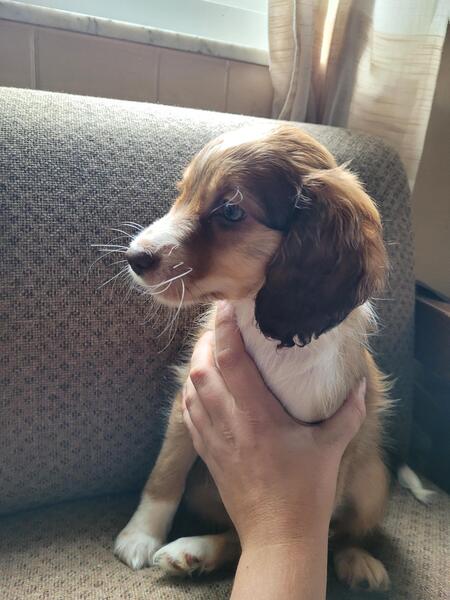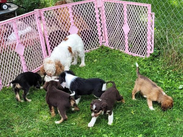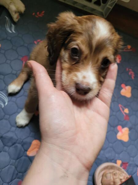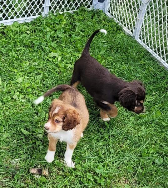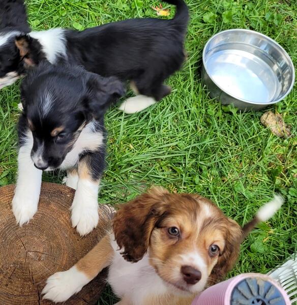 message alinahope23 about this ad Meet Wilma. She is a Cocker spaniel(mom) English shepherd(dad) mix. Born 7/15/23. Awesome companions. Great temperament. Raised with dogs, chickens, and children of all ages. Ready for her new home the beginning of October. A non refundable deposit is required to reserve a puppy. Wilma will come with age appropriate vet care, including her second round of shots. |