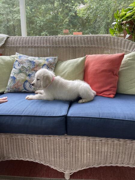 message julesjenk about this ad White female 50/50 Labradoodle. She has a great personality, super sweet, working on create training. Great with other dogs. Was born 6/3/2025. Has had all dewormings & vaccinated up to current age. Call or text for more information. 706-556-0168 |