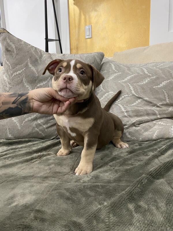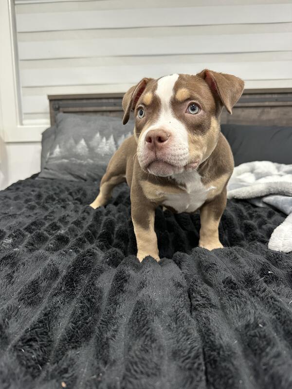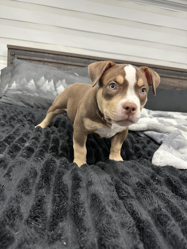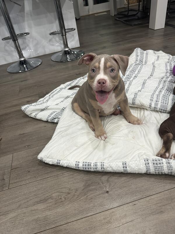 message valleybullies23 about this ad Male #1 SCAR - micro chocolate tri Male#2 GIZMO - chocolate tri with Merle will be micro or small pocket Male #3 MOUFASA- pocket chocolate tri Male#4 OTIS - pocket lilac tri 604-897-8221 Puppies range from 3-5k All are Abkc registered come with puppy passports, registration papers and puppy packs |