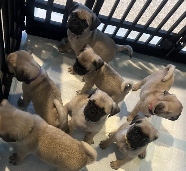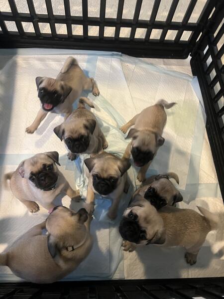 message amber1199 about this ad I have 4 pug puppies still available! Born 9/1/25 . 1 male and 3 females left from an original litter of 9. Both parents are on the property(pictured) and are both CKC registered. Puppies have full health certificates signed by the vet, including first rounds of shots. We can also provide the paperwork should you prefer to have them CKC registered as well. These babies are very loved and will not just go home with anyone. For more information, feel free to contact me, texting is preferred during normal working hours. Located in Citrus County 352-400-1296 |