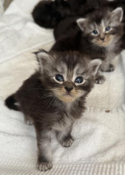 message purryacres about this ad Introducing "BINX" , the runt of the litter , a little smaller than her litter mates but a big personality. She is really sweet and enjoys being held, petted and snuggled. Soft, sweet and cuddly - you will adore this sweet little baby girl. All kittens are vet checked, will have at least their first FVRCP , 2 doses of deworming and revolution (all kittens leave with age appropriate vaccinations) . Maine Coon kittens make excellent human companions as these kittens enjoy their human interaction and attention and of course the Maine Coons are known as the gentle giants! Maine coon kittens make wonderful family pets, very friendly and outgoing. Super sweet kitties! All of our kittens are raised in a family environment with lots of love and affection so they are well socialized. Maine Coon cats are also elegant in appearance with their longer fur but with the convenience of low maintenance (as compared to other long hair breeds, like Persians, who require frequent combing and brushing All of our Maine Coon parents have been screened and tested and are negative for HCM, SMA, FIV , FELUK, PKD, PKD1 and heartworm to assure healthy kittens. Genetic testing is provided by UCLA Davis. Our kittens come with a health guarantee and are vet checked. Kittens are fed premium kitten food (Royal Canin Kitten) and you will receive a sample bag of kitten food. You will also get a favorite kitty toy or two! All of our Maine Coon kittens are TICA registered. papers are provided after their new owner provides proof of spay/neuter. Buy your kitten with confidence, we have over 16 years of breeding experience and are conveniently located in Bethlehem PA. Call or text 610-762-1914 to check availability RESERVE YOUR KITTY TODAY A deposit of $300 is required to reserve a kitty, deposits can be made via Paypal, Venmo, Zelle or by mailing a check or money order. Balance is paid when you pick up your kitten. Please contact us for any further details and to check on availability ! Thank you. 610-762-1914 message purryacres about this ad |