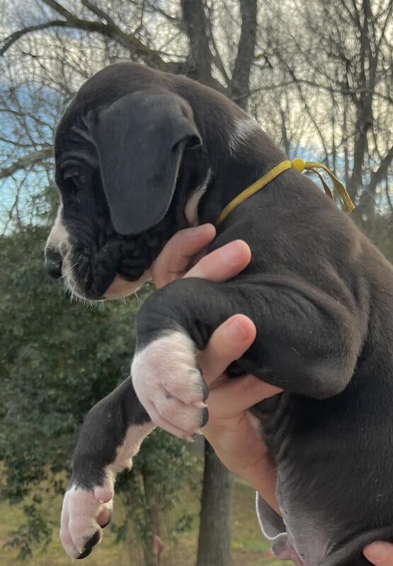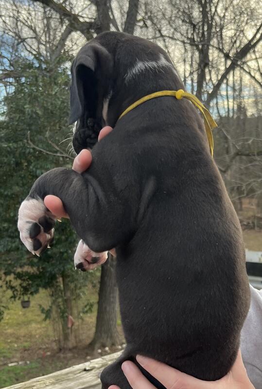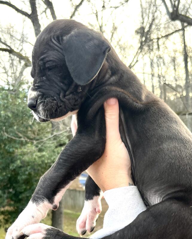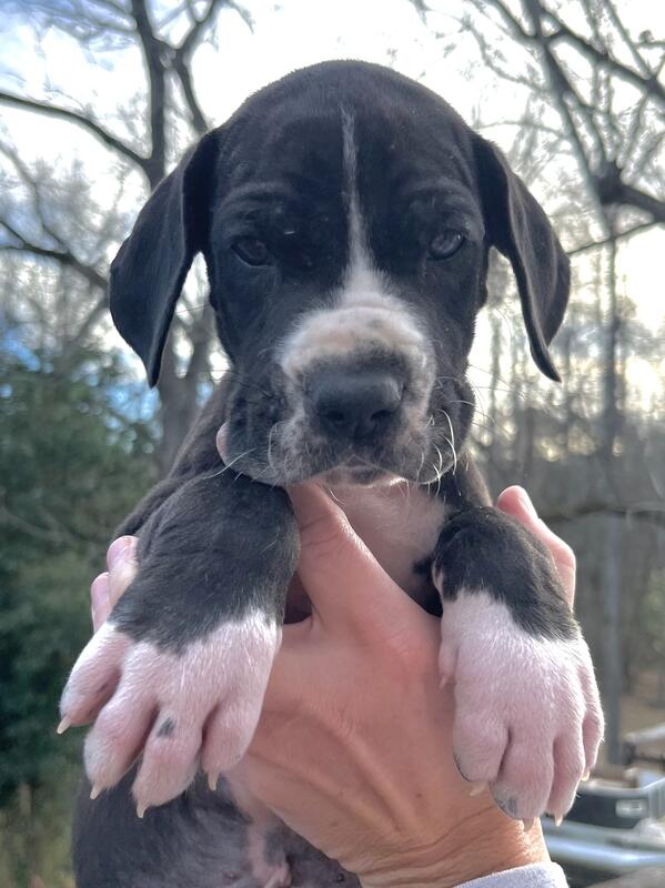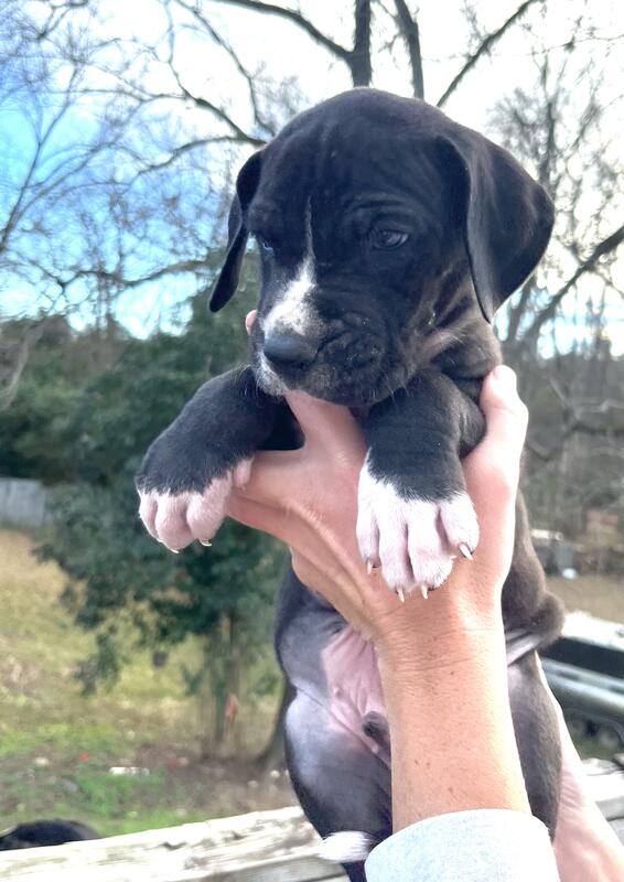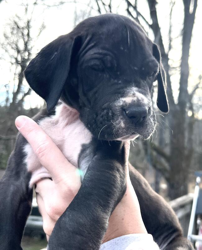 message mhinson13 about this ad AKC Great Dane Puppies Born November 18th, RTG January 6-13th at 7/8 weeks of age. Dewormed at age appropriate times, vet checked and first round of shots already. Will come with AKC paperwork. 3 males, black with white markings. 68% European bloodlines, dad show champions in pedigree |
