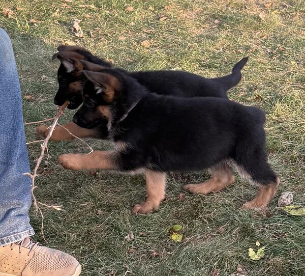 message paxton61 about this ad Gorgeous AKC registrable pups. Black and red. Excellent temperaments and health. Sire is a German Import. Both dam and sire are OFA certified for hips and elbows and DM clear . First vaccinations, regular deworming schedule, socialized daily, vet checked, litter certificate and registration papers and 72 hour health guarantee. . Call or text 309-232-3550. Serious enquires only please. |
