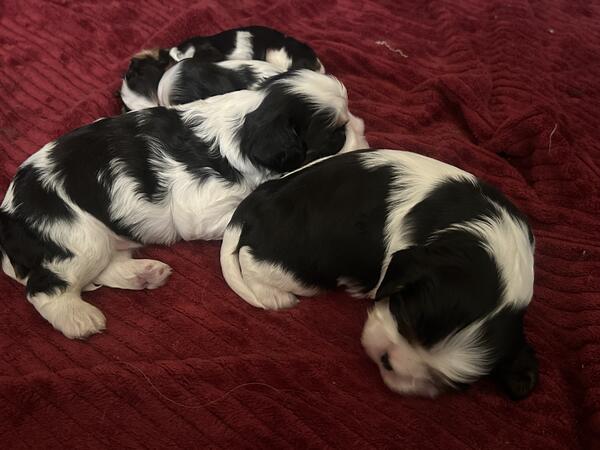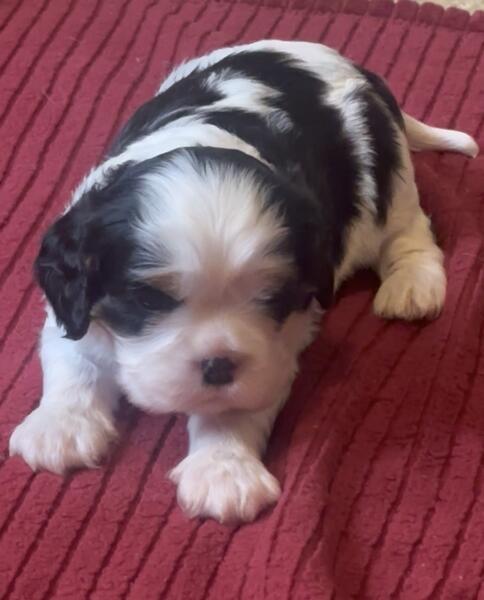 message thebakery1 about this ad Hello. We have a litter of purebred Cavalier King Charles Spaniel puppies born October 22, 2025 for sale. Our puppies will be ready to go home in mid December! Cavaliers make the best family companions and are the ultimate lapdogs. Every good thing you've heard about Cavaliers is true - they are devoted, humble, adaptable, quiet, friendly and loving companions! Both parents have nice ears, beautiful coats, great confirmation and markings - very correct and lovely and are healthy. The mother, Jane, is exceptional. She is so sweet and devoted and our family pet. Jane weighs about 17 lbs. She is in excellent health, up to date on all vet work and check ups and no health issues. Jane is double registered with both the AKC and CKC. Louis is the sire. He is also our pet. Both parents live with us. He is a Hungarian blenheim import with a champion background. He is healthy, marked beautiful, has great confirmation and personality. He is on the small side weighing only about 11 lbs. I will provide proof of his Hungarian papers with all genetic testing listed. These puppies are the best -meet the standards of the breed exceptionally and have wonderful personalities. Beautiful blazes. Good heads and ears -lovely puppies. Each puppy will go home with a puppy packet including a vet report of health check by a licensed vet, proof of 6 week shots and deworming and a standard contract for the sale of the puppy. The vet will write a report on each puppy after checking eyes, ears, heart, for hernias, breathing and more. I will also provide a shot schedule and a standard health guarantee. I will have them on dry food by the time they go home. I will send them home with a bag of food. I will ship my puppies but only within a reasonable distance from my location so as not to stress the puppy too much. Shipping costs are not included in the price and would be paid by the buyer. I can send videos if you dont live close. We are also willing to meet buyers within a reasonable drive so delivery is an option too. We raise our puppies in our home and they are handled and loved every day. They will be completely socialized puppies so expect a puppy who loves people and is ready for you. Ive been breeding quality, healthy Cavalier King Charles Spaniels for over 20 years. Its my passion to provide Cavaliers to families. I think they are the best and I love to share that fact! I am a home breeder who loves and knows the breed. I only do one litter a year or less. I require a $200.00 non refundable deposit to hold a puppy. I keep in regular touch with pictures, videos and messages once you have purchased a puppy until they go home. Please call or email me for any more details. I'm happy to answer your questions. Thank you for your time and interest. The Bakery Cavalier King Charles Spaniels Diane Baker (704) 813-0476 thefourbakers@bellsouth.net Iron Station, NC message thebakery1 about this ad |