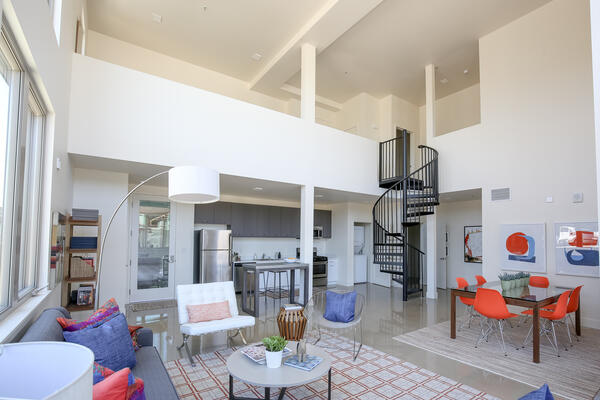 Oaklands newest live-work and apartment community, 401 Derby, is just across from Alameda and a block from Oakland Estuary in the heart of Oaklands artistic Jingletown neighborhood. 401 Derby offers a variety of floorplans with great light, stainless-steel appliances, quartz stone countertops, and individual washer and dryers. Many units have views of the water or private balconies. Jingletown is very walkable and bikeable. The Fruitvale BART is less than a 10-minute walk so you can be in San Francisco in less than 30 minutes.