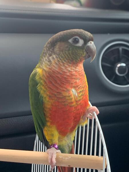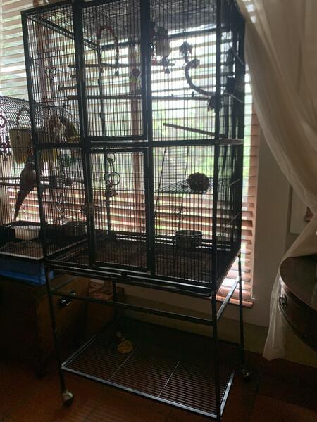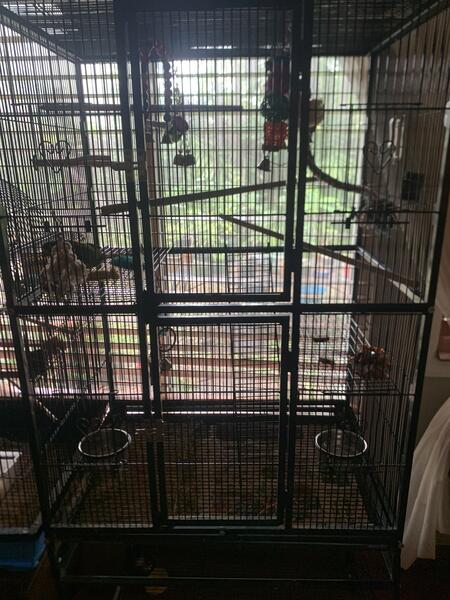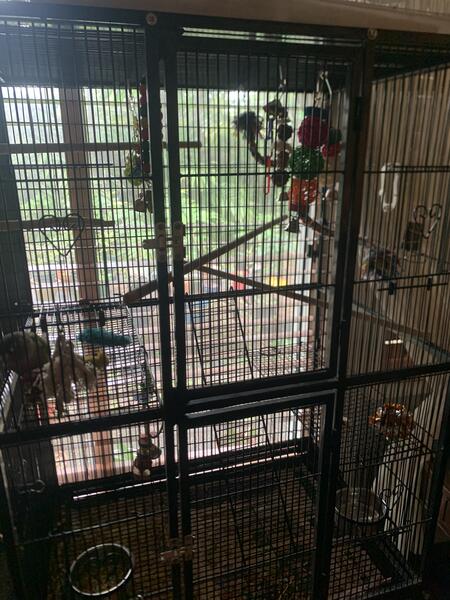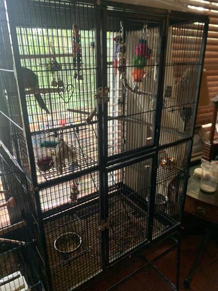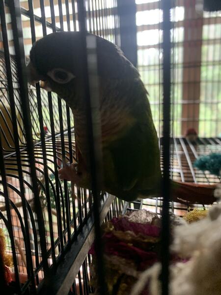 message valerier about this ad He is a male green cheek conure born in 2023, will be 2 years old this year. Rehoming because we are moving and cant keep him. Hand raised by a responsible breeder. He is trained to step up but is very shy so requires a lot of patience but with time and training he will warm up to you. Also can talk. Respondes to mango. Rehoming fee $400 includes large cage shown in pictures with all the toys and accessories. We are located in Miami Florida. Will need a large car to pick up, cage is really big. About 5ft tall with stand and wheels. |