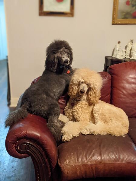 message rbkhl486 about this ad 3 sweet & beautiful Standard Poodles for sale! 1 champaigne colored Female, 2 black & silver Males, 4.5 months old. Theyre sweet, loyal, playful & loving. Puppy Pad & Crate Trained, De-Wormed, Vaccinated, & AKC Registered. Located in San Antonio, TX. Please contact Susan Oliver at 903-880-1932. The last pics are of brothers & sisters & Mom & Dad. |