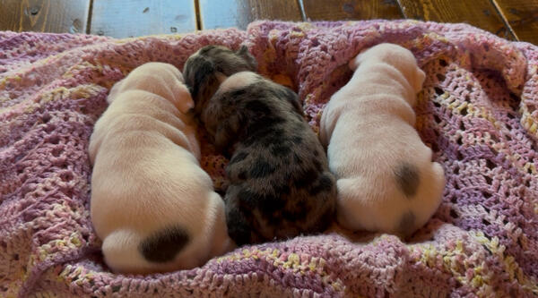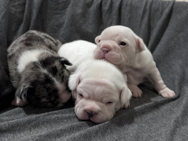 message jskinner5111 about this ad Frenchtons/Faux frenchies Dad is AKC reg French bulldog Mom is 50/50 frenchie/boston 3 girls still available Ready to go October 30th Mom and dad in last 2 pictures Now taking deposits. Merle is $2000 White $1500 |