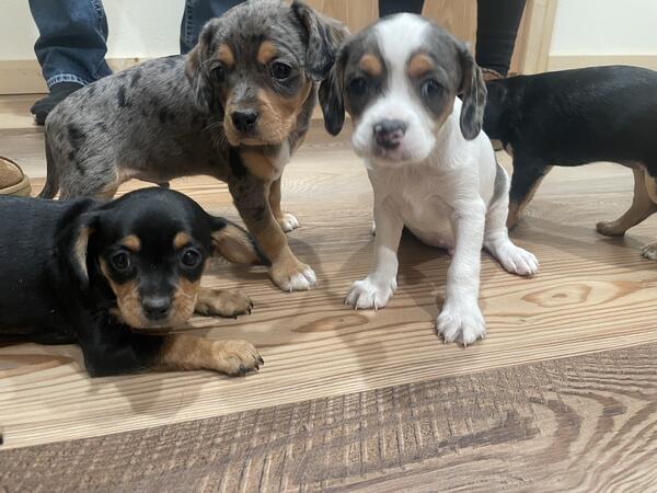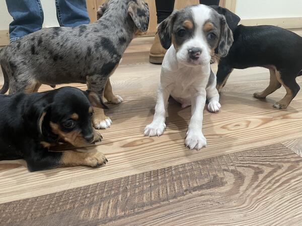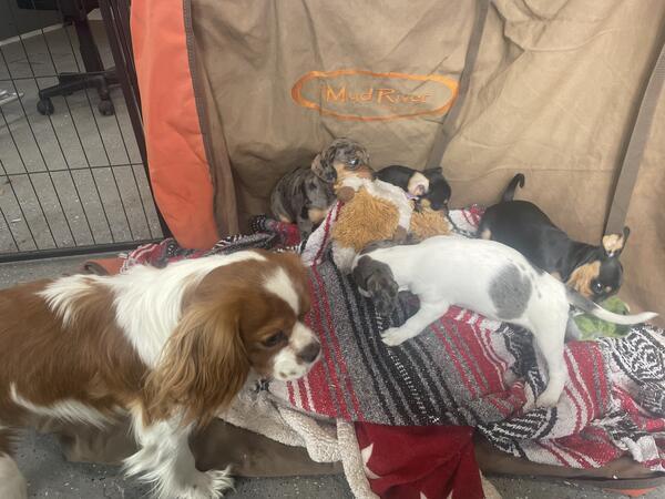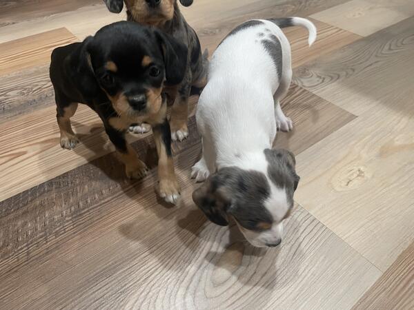 message mholm83 about this ad 1/4 min pin 3/4 King Charles puppies. All vet/health checked, first shots and dewormed. Both parents on site, family raised with other dogs, kids, and a cat. Been working on going outside to go potty as well. They each go home with their vet papers, shot record, puppy food, toy, treats, puppy training pads, and if you need a kennel I may have extras. Both black puppies are female and the white/harlequin is a male. Located in Ada, MN but can possibly meet in Detroit Lakes, Fargo/Moorhead, or Grand Forks |