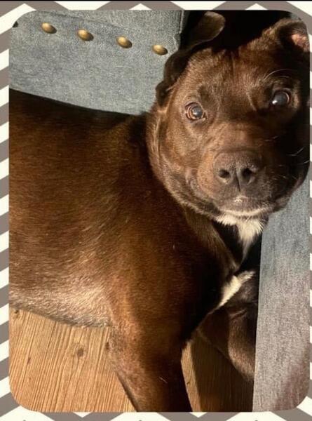 message shrbr4729 about this ad Eeevee is an approximately 3-4 year old Staffy mix, she is very sweet and loving just needs some extra attention that we are unable to give her right now. She lives with 2 other larger dogs and they do very well together, she needs to be in a NO cat home, and NO small dogs, she is a rough player but not aggressive. She is also a very good guard dog. NO small children prefers ages 10+ years. She just wants love and the only reason for the rehome is due to financial reasons. We just want her to go to a really good home with someone who would be willing to put in the time and effort into her. The reason for the rehoming fee is due to ensuring she goes to a good home and what she will come with; cage, collar, leash, and prong collar for training. |