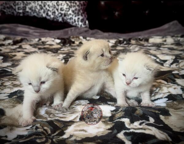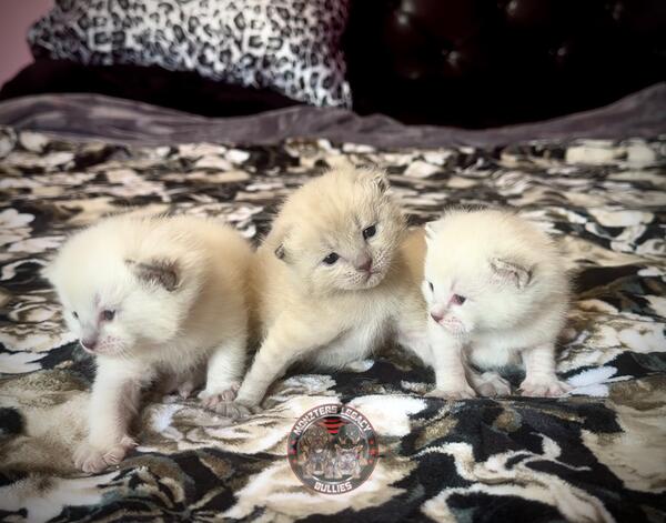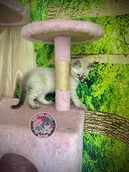 message thebullymom about this ad Designer Himalayan Snow Bengal kittens. 2 males and 1 female spot left open to claim. Text 7638982835 if interested. $250 to claim your spot. Will come vet checked, first shots, microchipped. Males $450 more at take home, females $550 more at take home. Ready December 15th to join you. Current kittens are 3 weeks old and still developing color and markings. Pictures of kittens from their first litter added for reference. |