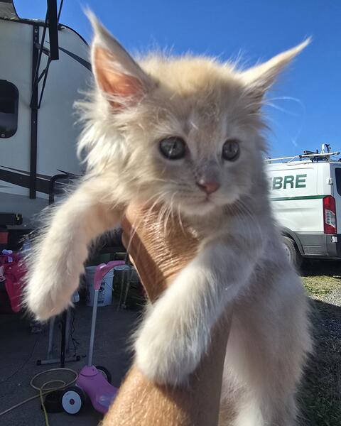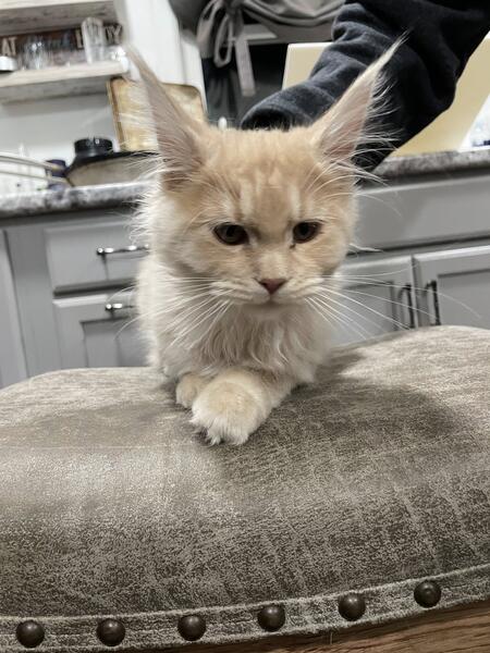 message sammsdream about this ad DOB 7/24/25 Red silver female Mainecoon. She has a nub tail. Very fluffy and solid girl. Dam red silver. Sire red tabby poly. Orwell Ohio. Can travel some for delivery. Trucklycoons Cattery on F B |