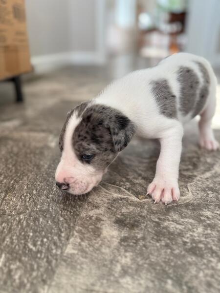 message moxiesmales about this ad Rare Great Dane Catahoula Puppies 9 Males Available Born: September 4th, 2025 Earliest Availability: November 14th, 2025 This unique litter blends the gentle, affectionate nature of the Great Dane with the intelligence, energy, and protective instincts of the Catahoula, creating loyal, playful, and loving companions. These floppy-eared, medium-to-large puppies are ideal for active families who can provide exercise, training, and social interaction. Parent Information: Mother: Catahoula, medium size, intelligent, energetic, excellent with children and other pets. Father: Great Dane, purebred, large, affectionate, calm, and gentle, especially around family. Both parents are in excellent health and mother will be available for viewing. Mother's one and only litter Puppy Personality: These puppies are being raised in a nurturing home with two small children and two cats, ensuring early socialization and comfort with family life. They are playful, curious, and eager to bond, making them incredible family pets. Health & Care: Up-to-date 8-week vaccinations Dewormed Puppy pad training Well-socialized from birth Health and temperament guarantees through a contract of sale Expected Adult Size: Medium to large; floppy ears and a strong, athletic build. Regular exercise and mental stimulation will keep them happy and healthy. Feeding & Exercise: These pups will thrive on a balanced diet suitable for large breeds and daily physical activity, along with mental enrichment. Grooming is low to moderate, depending on coat type. Availability & Purchase: Cash purchase only Local pickup required Interested buyers can reserve a puppy with a deposit This rare Great Dane Catahoula mix offers the best of both breeds: affectionate, intelligent, and protective family companions. Dont miss the chance to welcome one of these amazing puppies into your home just in time for the holidays! message moxiesmales about this ad |