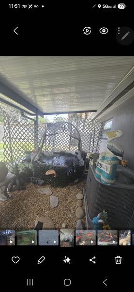 message pigeonmom72 about this ad 300g pond 3 Laguna filter pumps, 2 massive waterfalls. Full of media, 2 biofilters, Laguna. Air pump goldfish 1 butterflykoi lots of goldfish 8 to 11 inches 4 babies comet shubumkin common fancy all healthy eat greens daily 904-414-0936 jacksonville florida |