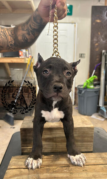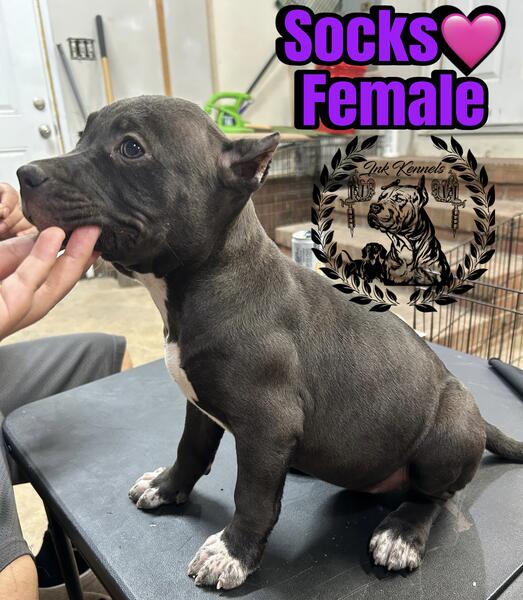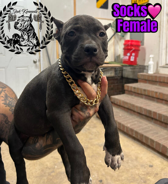 message inkkennels about this ad Female Socks born May 6th 2025 -XL bully -ABKC registered -Vet checked/ OTD on Vaccines -Cropped ears - Goldsboro NC Ready to go home can meet in Goldsboro. Instagram: Ink.kennels_ If youre interested dm me on ig or email me |