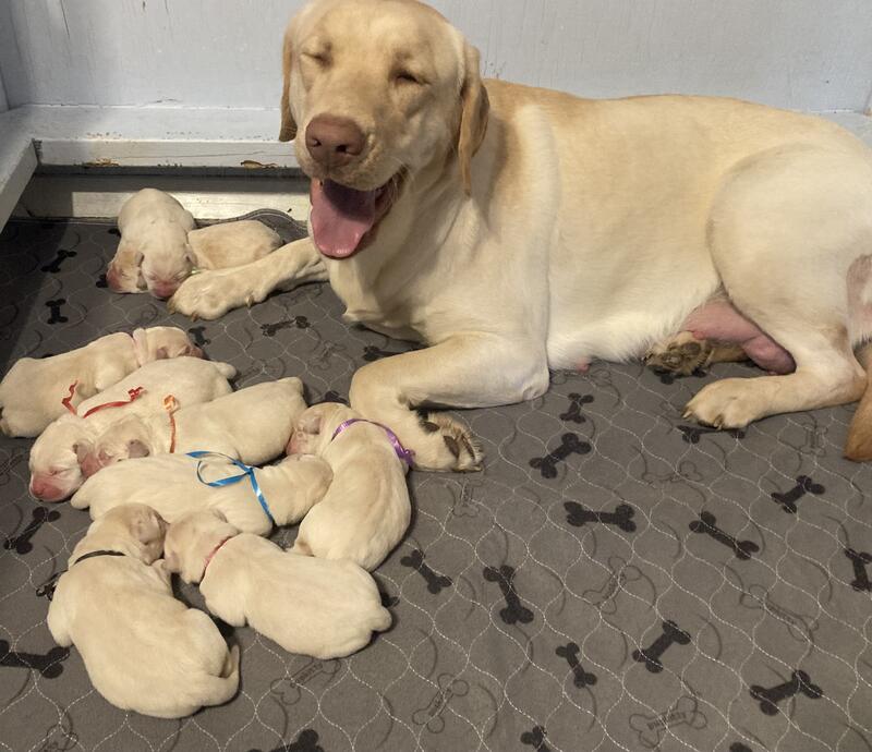 message lbldlr1488 about this ad We have a beautiful litter of nine beautiful Labrador puppies that range in color from white to creams. They are now 4 weeks old. All have beautiful black pigment and noses. Mom is an American and dad is pure English. He had an Embark profile and has been DNA tested. The temperm on both parents is excellent. They pups will be vet checked on Kam 13 and ready to go that following weekend. If you are interested in a puppy they all have a different color ribbon on. Please text me at 607-349-8291 for more information. Thanks for looking. |