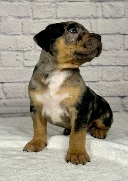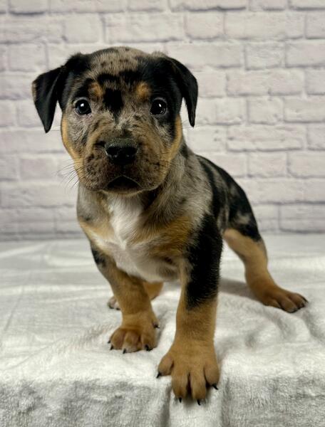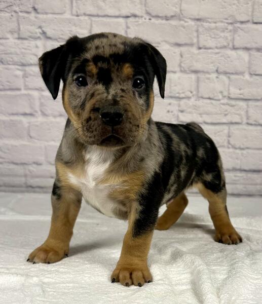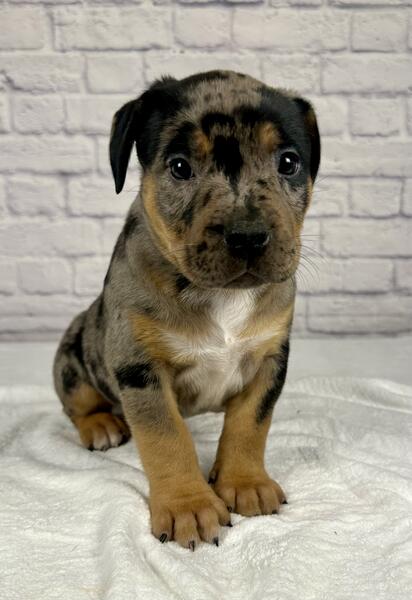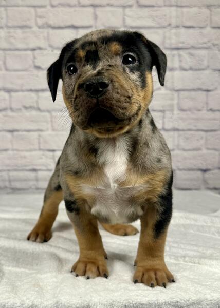 message grossobullies about this ad Black tri Merle XL American Bully puppy, 9 week old Male ready to find his forever home. The sire is Cal Kolas Loki & the dam is Bossys Luna. Luna is about 95 pounds & Loki is about 105 pounds. All of our dogs are ABKC registered. Both parents are from champion bloodlines and carry no flaws at all. We are Grosso Bullies located in Berwyn IL (Chicago area Text (708)363-8379 www.grossobullies.com grossobullieschicago (Instagram) |