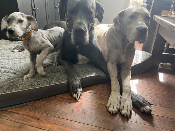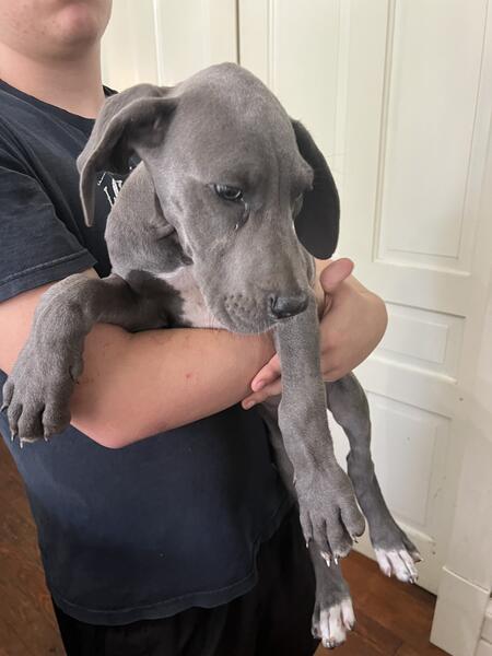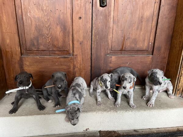 message fergysdanes about this ad Fergys Danes is so EXCITED to announce we had SEVEN healthy puppies born on 5.9.25. Deposit is $300 and is deducted from purchase price via Venmo, ApplePay, or PayPal. The deposit goes towards the purchase price. Puppies are sold with AKC limited registration, but we are happy to negotiate full registration, just reach out for detail. Pink- blue female - REDUCED TO $1000 ( from$1250) Blue- Merle female-SOLD Yellow- Merle female-SOLD Orange - Merle female -SOLD Green- Merle male-SOLD Tan- blue male- SOLD white-blue male- SOLD All of our Great Dane puppies are examined and given first shots by our veterinarian at 8 weeks, are dewormed at 2,4,6, & 8 weeks under the guidance of our veterinarian, come with a one-year health guarantee, health certificate and vaccine record signed by our veterinarian , and a purina pro plan puppy starter kit. Call or text 740-505-3744 with other questions or to place a deposit Please checkout our AKC marketplace Fergys Danes breeder profile or Fergys Danes Facebook Page for additonal information and pictures. We accept PayPal, Venmo, & Apple Pay for deposit. If you have any questions call or text 740-505-3744. Price will range from 1250-1400. Full registration (breeding rights) can be negotiated on a case by case basis. If you have any questions call or text 740-505-3744. Texts will receive a must faster response as I do not always get alerts on Hoobly messenger. message fergysdanes about this ad |