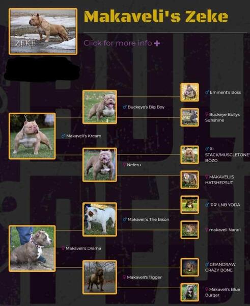 message realvisualbullies about this ad The pedigree is beautiful but my boy speaks for himself. Hes a very handsome clean dog. His temperament is great, hes functional, and overall a producer. Zeke is ABKC registered. The stud fee is $2000 but just $250 to lock-in. |
