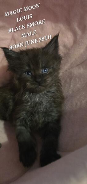 message churchill13 about this ad We are a TICA Registered Cattery, Magic Mokn Maine Coons. Currently these 4 kittens are able to be Reserved. Three Black Smoke males, one Blue Smoke female. Both parents are from award winning European lineage and have clear health tests. Kittens come with TICA Registration, first vaccines, wormer and health exams complete, and a Pedigree if desired. These sweet babies will be ready to leave September 18th, but they are able to be Reserved now. Text me at 810 304 6413 with any questions, and/or visit our website for more information. www.magicmoonmainecoons.com |