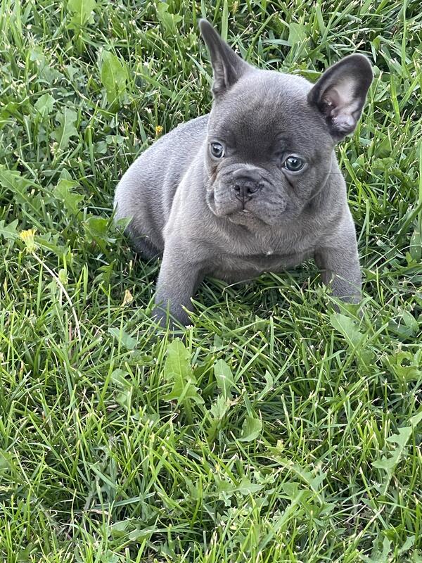 message thrbn3532 about this ad Hello I have a male blue Frenchie puppy available. Hes very playful very sweet up-to-date on all his shots. Halfway potty trained. All you have to do is take him out after you feed him and two more times during the day you dont have to worry about a mess. Hes AKC register |