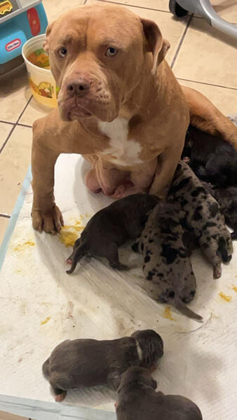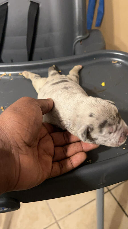 message kingslim901 about this ad Mom is a chocolate Merle and the dad it a black bully. All black are 200 but they carry the Merle genes. Blues 250 and Merles 500 |