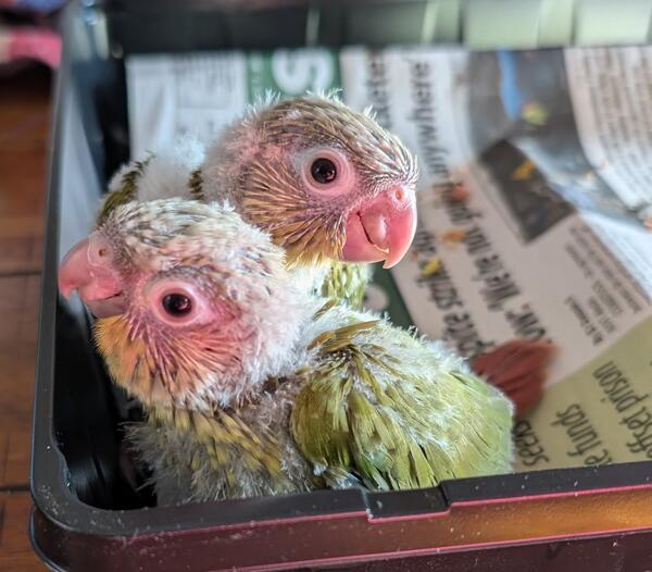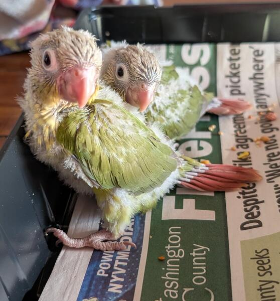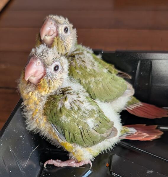 message doxie20 about this ad 2 very sweet and cuddly baby Green Cheek Conures, very hand tamed. They are just at the beginning of starting to learn to step up,they enjoy being held and cuddled and even like little kisses on the head. If you love your birds as much as I do they will make great pets. Dad is a talker. DNA is pending should have results by around April 4 , babies should be ready for there new homes between the last week of April, first week of May.please feel free to text me with any questions you may have. I will update as soon as DNA is back along with updating photos as babies change. |