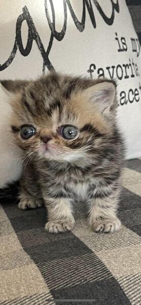 message jimmyhmphmp about this ad 5 week old shorthair exotic female brown tabby from champion pedigree comes with shots and wormed , registered with CFA. from , D EDEN LOVER BLOODLINES |