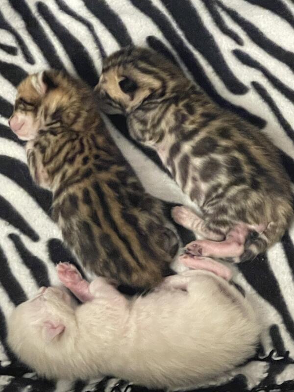message leslieandleonard about this ad Bengal kittens .t.i.c.a registered , one female snow with blue eyes, one brown boy with big rosettes, one boy, silver, with brown accents and big rosettes. Health guaranteed from any hereditary diseases. First set of shots and professionally checked out by a veterinarian before going home. 1600. Will include a treehouse, water fountain, food and toys . Located in Macomb, Michigan taking deposits ready to go home end of January . 586-943-7366 |