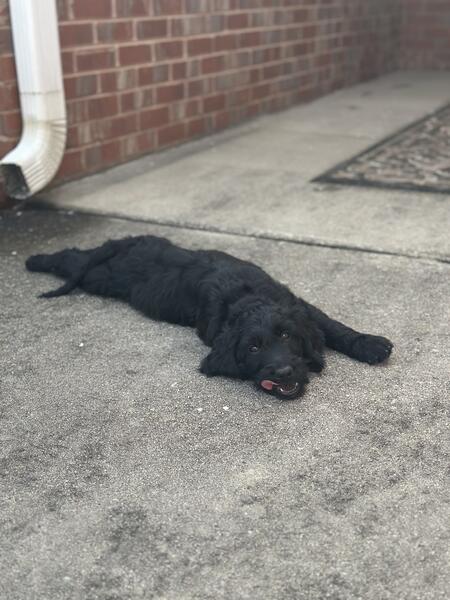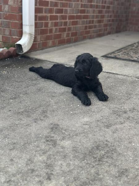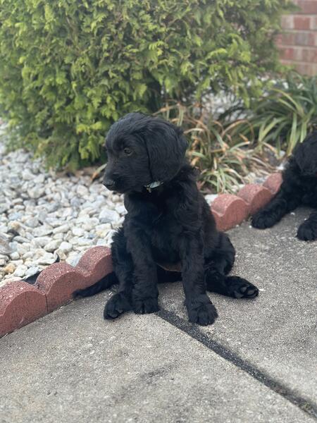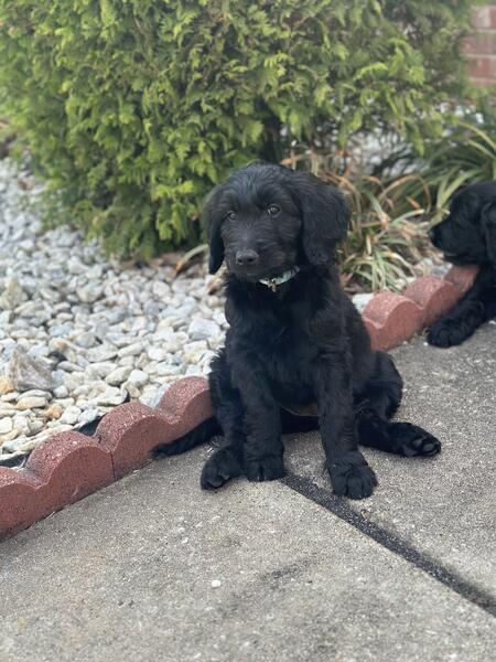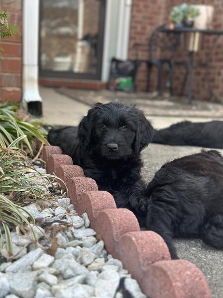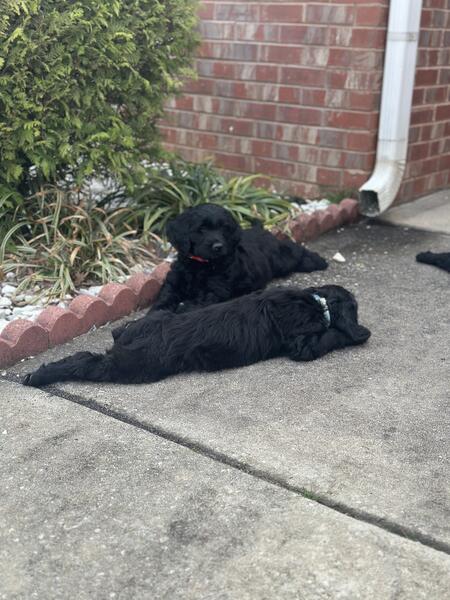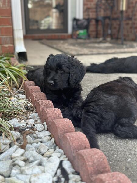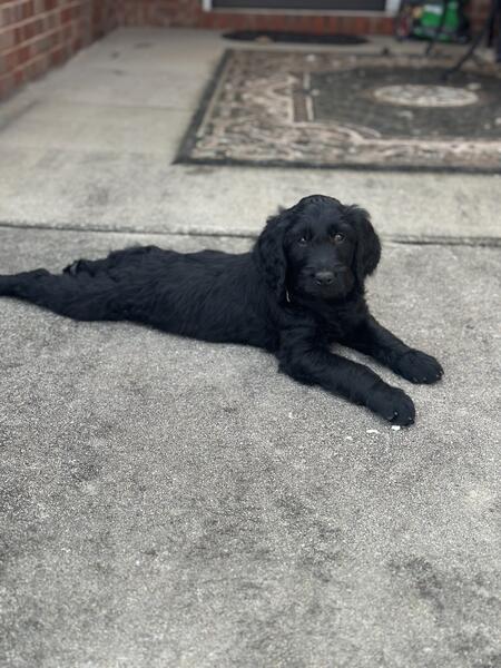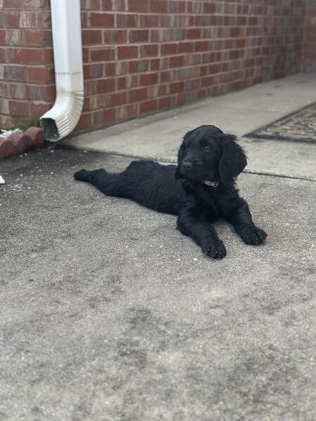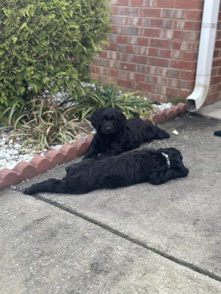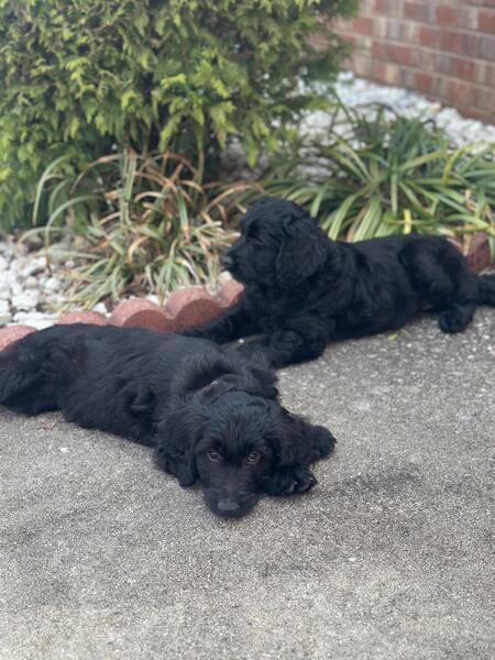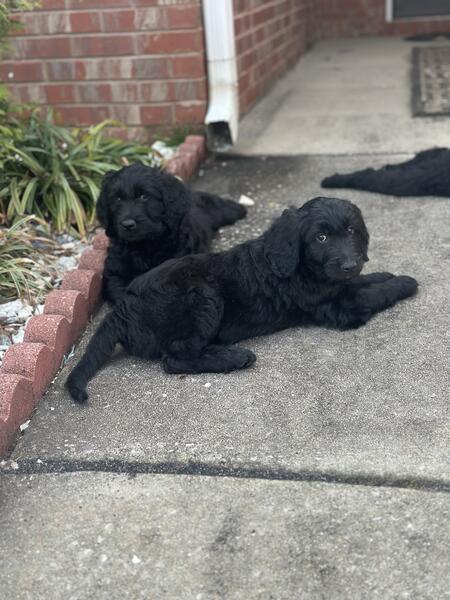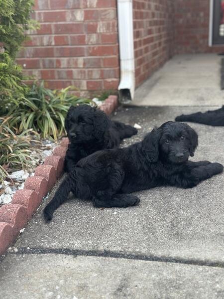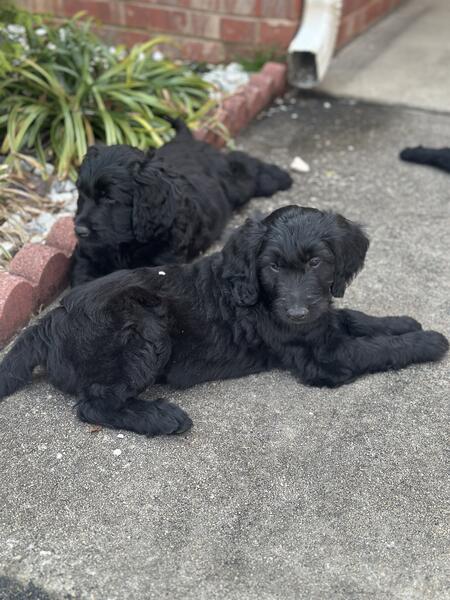 message preciousj about this ad I have 2 remaining pups all super fluffy and solid black. Pictures dont do them justice at all 2 females All have been dewormed, vet checked and vaccinated. Mom is a gorgeous phantom standard poodle and dad is an akc registered golden retriever. Pups are all very sweet and mild mannered, have been handled since day one 404-374-3133 |