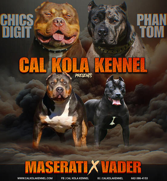 message calkolakennel about this ad Hi, my name is Tyler Riley owner of Cal Kola Kennel. Here at Cal Kola Kennel. We are located in Mississippi and recently just opened a chapter in Florida, we specialize XL American pitbull terrier an American bullies. We strive to produce the best, we professionalize in selective breedings suitable for you and your family. We produce XL American pitbull terrier and American bullies that mature anywhere from 90-150 pounds. Remember when searching for any dog its not just how dogs are are raised, its how they are bred with over 10 years of breeding experience we can offer you Quality, Temperament, Health, Structure, and with particular breedings a color of your choice! Our dogs our Family orientated, we take them to the river, on trips, local stores, public events and dog shows. Call us today for more information on our puppies! Follow us on instagram and Facebook @calkolakennel |