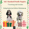 message wldsn1541 about this ad Meet Twinkle. A black AKC Standard Poodle female with a soft, shiny coat and elegant presence. Our puppies are raised with love, early handling, and socialization Expected adult size 50 to 65 lbs Low-shedding, hypoallergenic coats Vet checked, vaccinated, dewormed 1-year health guarantee Limited AKC registration DNA Health Testing to ensure no issues with Chondrodysplasia (CDPA Chondrodystrophy (CDDY Degenerative Myelopathy (DM Neonatal Encephalopathy w/ Seizures (NeWS Progressive Retinal Atrophy (prcd and von Willebrands Disease Type I (vWD1 Ready to go home December 15th - just in time for the holidays. Now accepting deposits to reserve your puppy Located in Galion, Ohio. We can help find transportation if needed. |