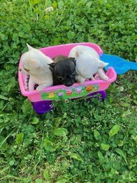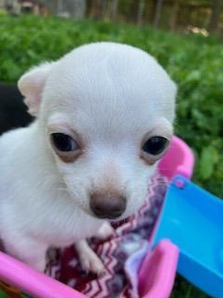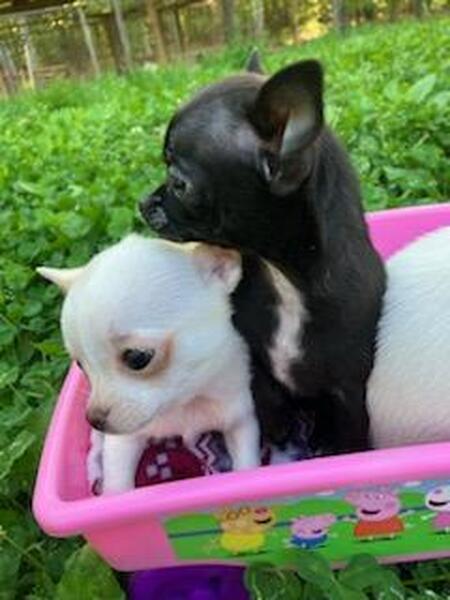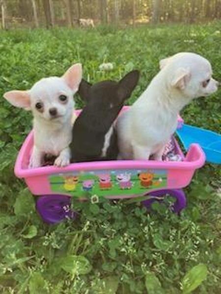 message dbdbfnl316 about this ad The mostly white female pup on the left in the photos is the only one still available. These pups are relatively small and not likely to be suitable for breeding. All three are short haired. Born February 11th. They are all wormed and have had 3 sets of shots. They are home raised, lively, interactive and ready for their new homes. We are longtime AKC Chihuahua breeders. We aspire to breed our Chihuahuas for the best health and outstanding disposition and personality. Our puppies are home raised. We are relocated 5 minutes from Lynchburg, Virginia and can sometimes travel a bit to meet new owners part way. We seek good homes for our beloved pups and would like to meet in person prior to purchase, but that will have to be in a public place for now. |