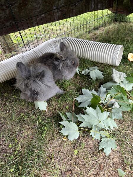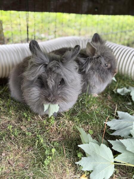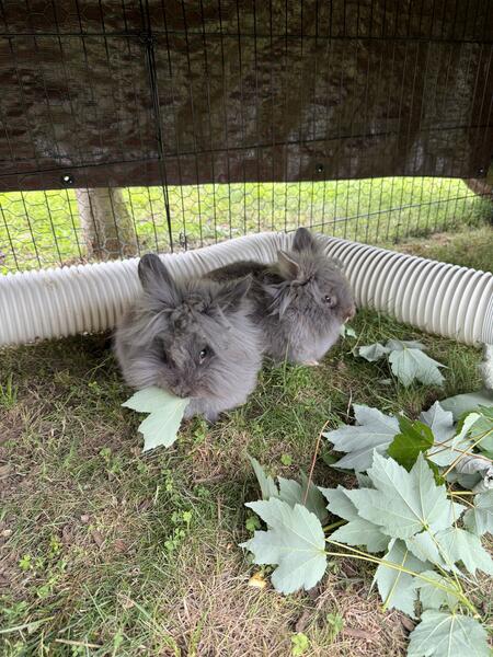 2 male Lionhead rabbits and hutch both healthy rabbits