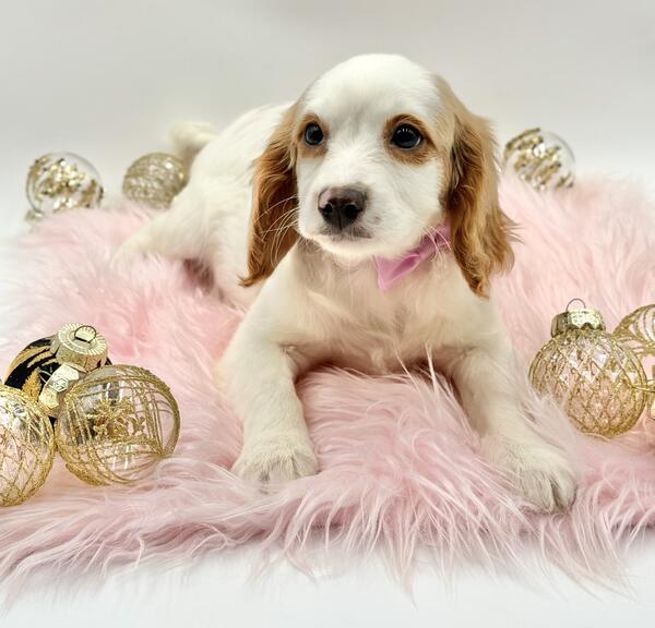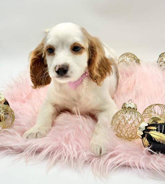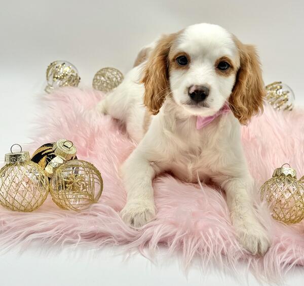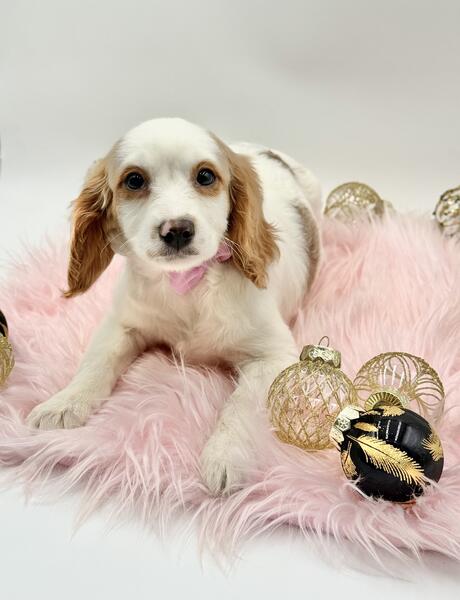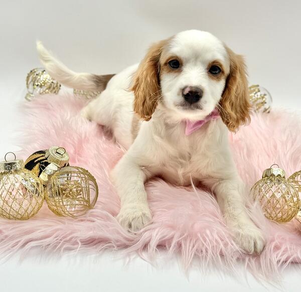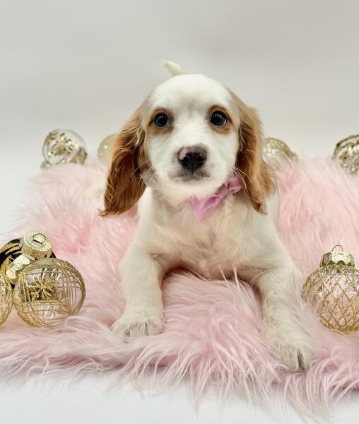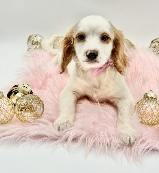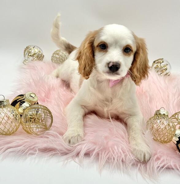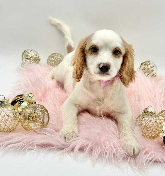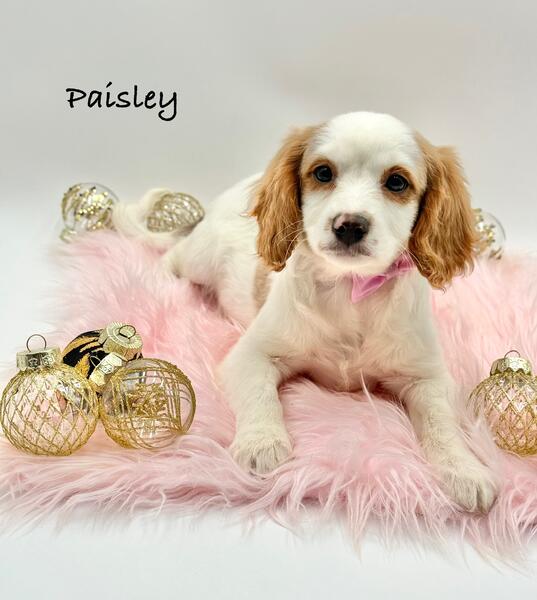 message dyerlake94 about this ad Paisley is a gorgeous Blenheim cavapoo She has the Light Pink Bow Shes very sweet Shes not fully furnished She had a complete wellness exam and heart check on 10/31/25 and shes in good health. Her heart was cleared at 10.5 weeks old. Her moms our gorgeous dark red cavapoo female Loretta and her dads our friends handsome dark red toy poodle male. Her mom weighs 17.5 lbs and her dad weighs 11.6 lbs. Her mom can be ConCKC registered and her dad can be ACA registered. She can be ConCKC registered and she comes with a ConCKC registration form. She will be available for her forever home after 10.5 weeks old and she will have a complete wellness exam, heart check, age appropriate shots, wormings, sentinel spectrum and K9 advantix II. We will start weaning her at 8 weeks old but she will remain with her mom and siblings until 10 weeks old. Shes raised on puppy culture and has the sweetest disposition. Shes very sweet and loves to be handled and loved on. No known SAS in her line. Her parents are both clear for DM. Her mom has her eyes certified by the specialist, OFA heart normal (sent off to OFA OFA patellas normal (sent off to OFA OFA Dentition (normal and x rays of hips/elbows (sent off to OFA) and genetic tested. Her dads OFA certified on his hips, elbows, hearts, patellas, dentition, leg calve perthes, and wisdom panel clear. She is sold on a spay contract and she comes with a 1 year health guarantee Shes an Flb cavapoo which means shes 3/4 poodle and 1/4 cavalier King Charles spaniel which means shes hypoallergenic which is good for those with allergies but doesnt prevent them. Shes microchipped (registration has to be registered in her new owners name Shes currently eating The Pride 30/20 puppy From 3.5-7 weeks old we make mush meals by soaking her hard food and adding cottage cheese, pro plan canned puppy food, Nuvet vitamins, Greek yogurt, K9 power puppy, apple cider vinegar, probiotics, and scrambled eggs We will start her on hard kibble at 8 weeks old and we will add pro plan canned soft, nuvet vitamins, Probiotics, and K9 power puppy. By 9 weeks old we will slowly pull back on the soft so shes use to eating hard food only. She had her first parvo prevention shot on 10/4/25 (Neo Par She also got her first dose of heartworm prevention on 10/4/25 (sentinel spectrum 2-8 lbs) its safe for puppies 6 weeks and older and prevents heartworms, fleas, and worms. Puppy shots come in a series and she will not be protected until the series is completed. Her moms 51 % cavalier King Charles spaniel and 49% poodle according to Wisdom. Her dad is 100% poodle and we have his testing with wisdom as well. Estimated weight is 15-18 lbs She has 1 Neopar and 2 DAPPV +cv vaccines message dyerlake94 about this ad |