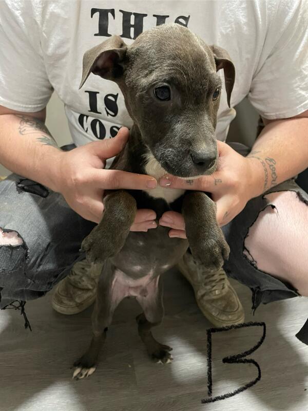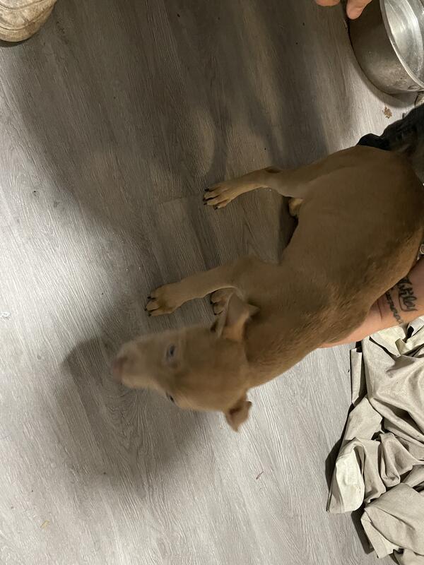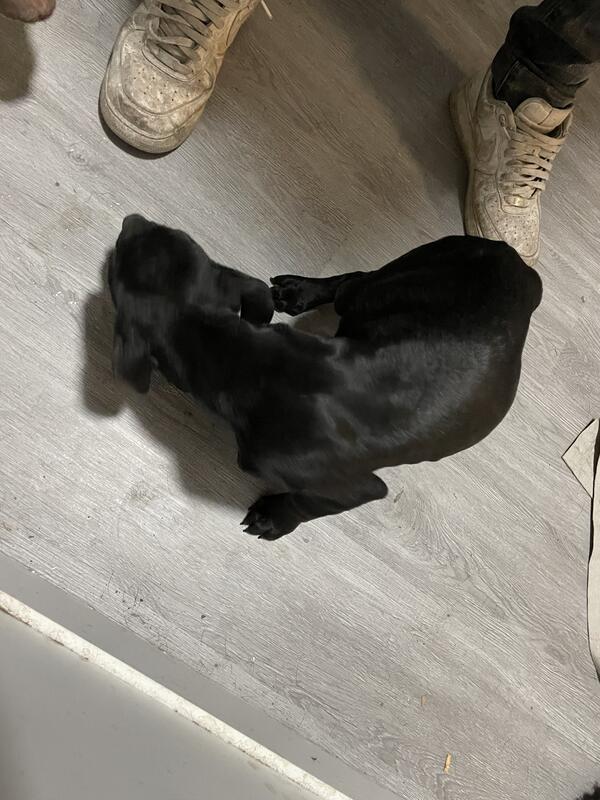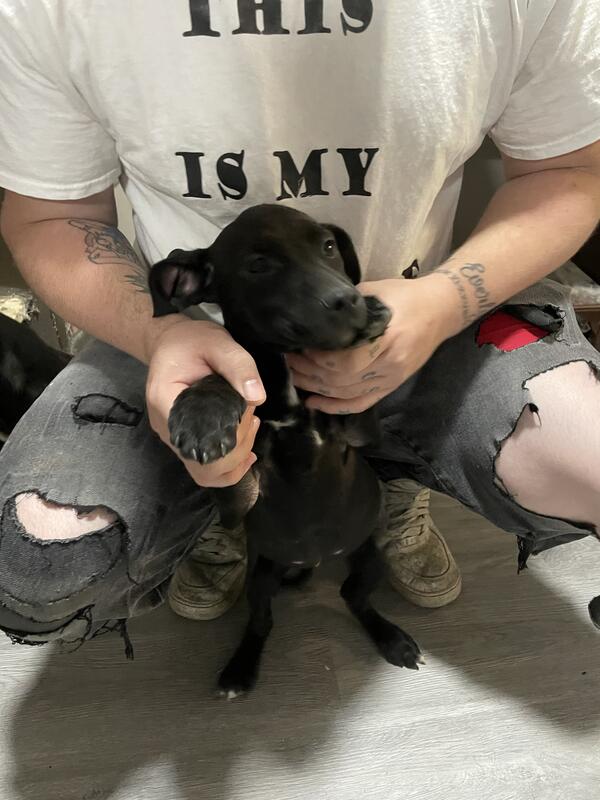 8 puppies that are a mixed breed of Doberman pinscher, black lab, and pit bull that are looking for there forever home