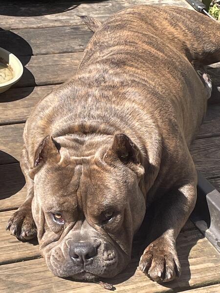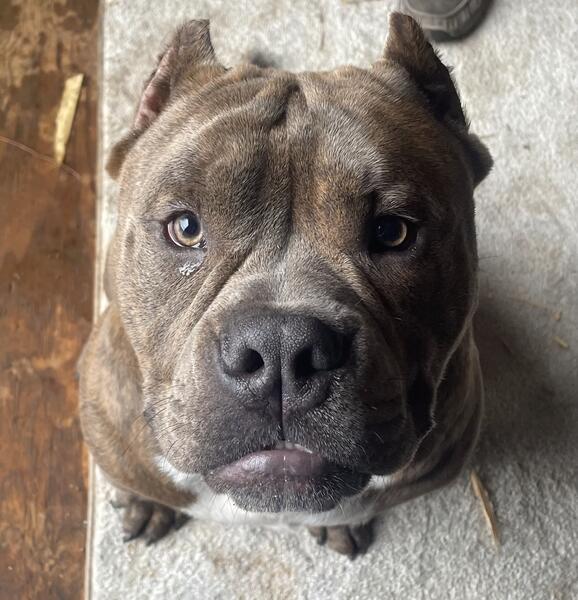 message mchlw2887 about this ad Beautiful loving ABKC registered from a champion bloodline.Hes almost 2 years old ready for breeding if thats what you want. Hes got a clean bill of health, up to day on all shots. Micro-chipped. Hes on Nexguard Plus for flee/tick and heartworm. Hes a dominant Male loving to people, protector of kids. He needs to be the only Male dog in the household |